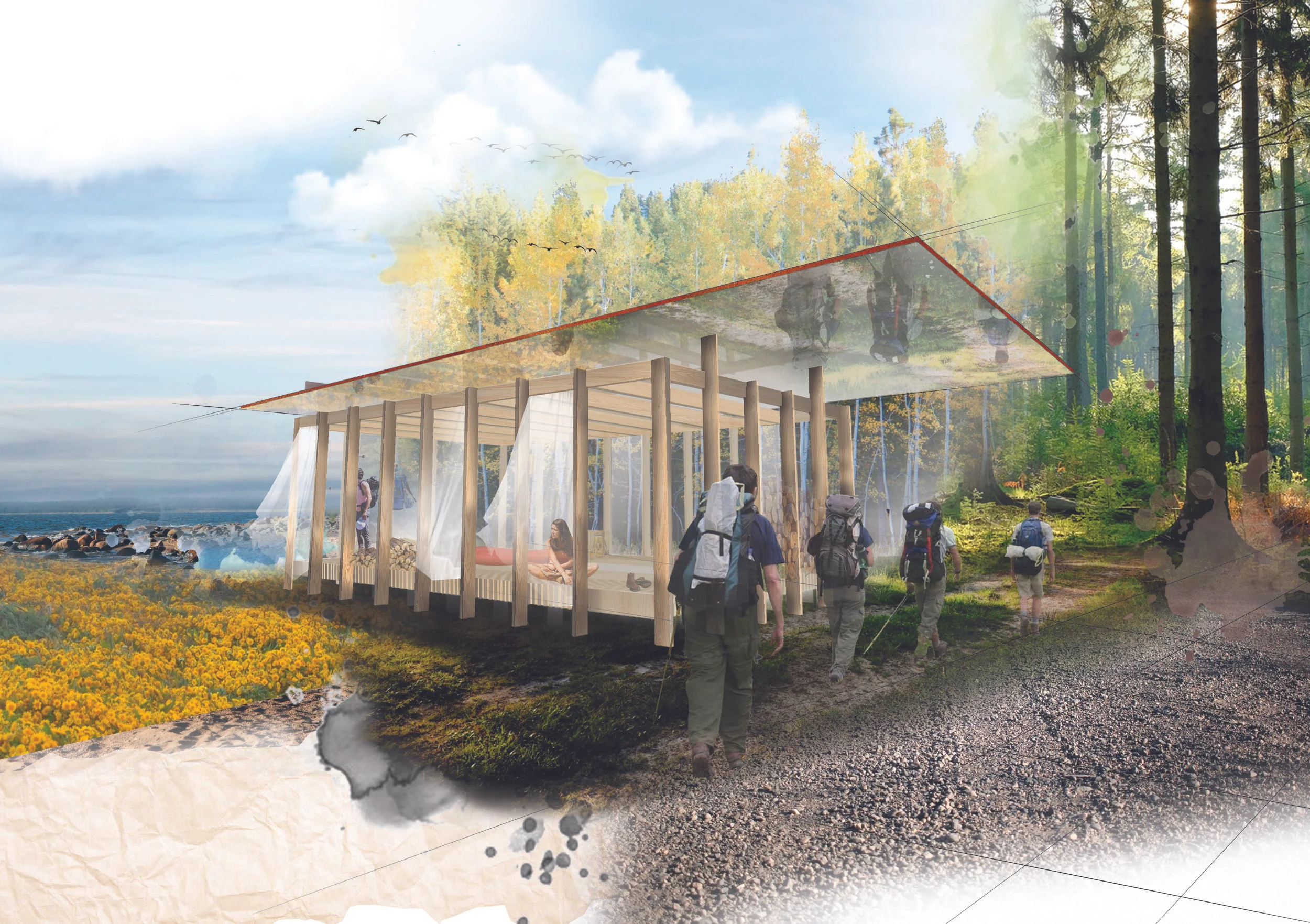 Jāņi (the celebration of the summer solstice) is an important part of Latvian history and traditions. As a part of the celebration, Latvians hold a strong relationship with nature and will return to the surrounding forests and marshes to celebrate the festivities. An important part of Jāņi is to forage elements from nature relating back to the country’s history. The goal is for the occupants to change the space how they wish, through foraging and taking ownership of the adaptable elements provided.